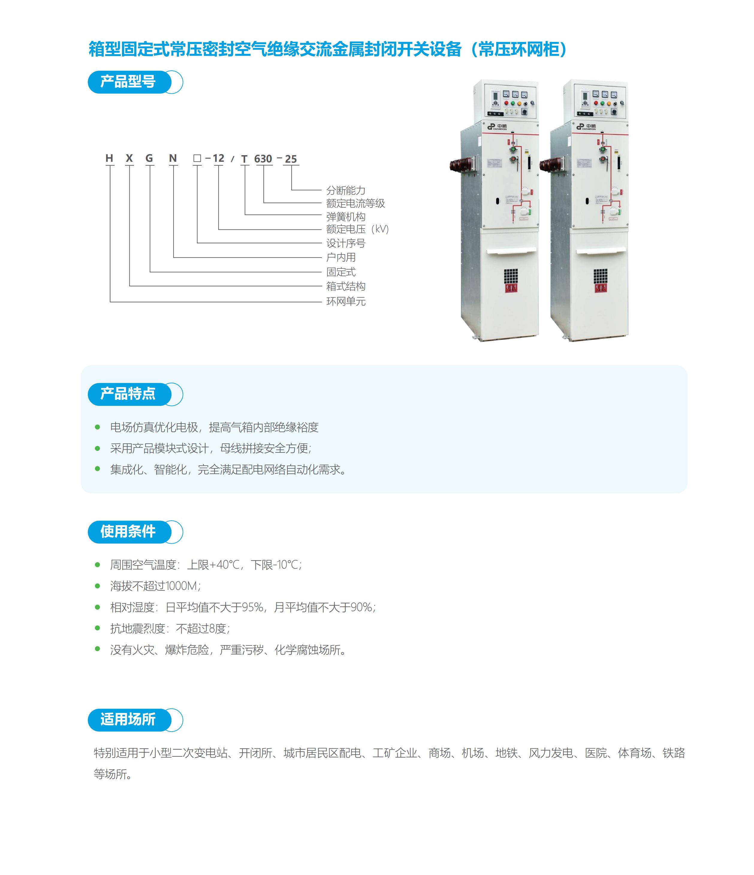 該柜適用于交流 50HZ、12KV 的電力系統(tǒng),用于城市居民區(qū)配電、小型二次配電站、小型開閉所、工礦企業(yè)、高層建筑、住宅小區(qū)、醫(yī)院、體育場、公園等配電系統(tǒng)和箱式變電站中。